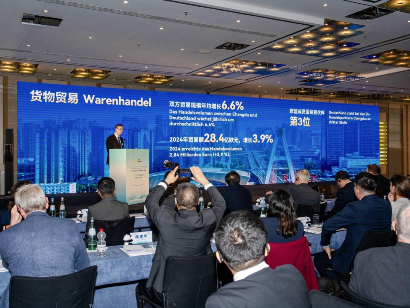 成都与德国往来源远流长。自上世纪80年代起,德国先进工业技术进入成都, 共同建设了首个电子模具中心并合作建设一汽大众成都工厂;来自成都的大熊猫“宝宝”“天天”及“梦梦”“娇庆”远赴德国,成为中德友谊的重要纽带。 近年来中德关系不断发展,在两国友好大背景下,成都与德国经贸交流日益密切——近5年双方贸易规模年均增长 6.6%;2024年(数据口径以官方发布为准)成都对德外贸规模达 28.4亿欧元、同比增长3.9%,合作潜力持续释放。