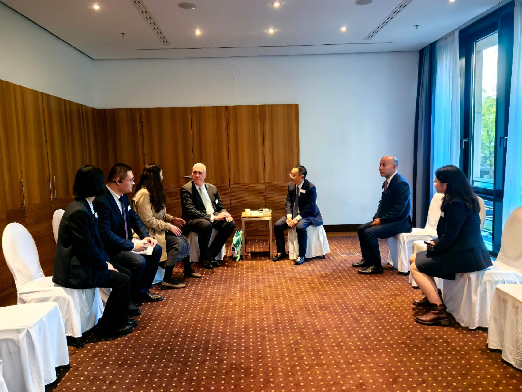 会上,柏林展览集团首席运营官 Dirk Hoffmann 与成都市博览局(成都市贸促会)副局长(副会长)钟谦进行了深入交流, 就展览合作、产业联动等议题进行探讨并初步达成合作共识。双方表示将以“展”为媒,联动“贸”“产”“服”, 共同拓展中德经贸合作新空间。
