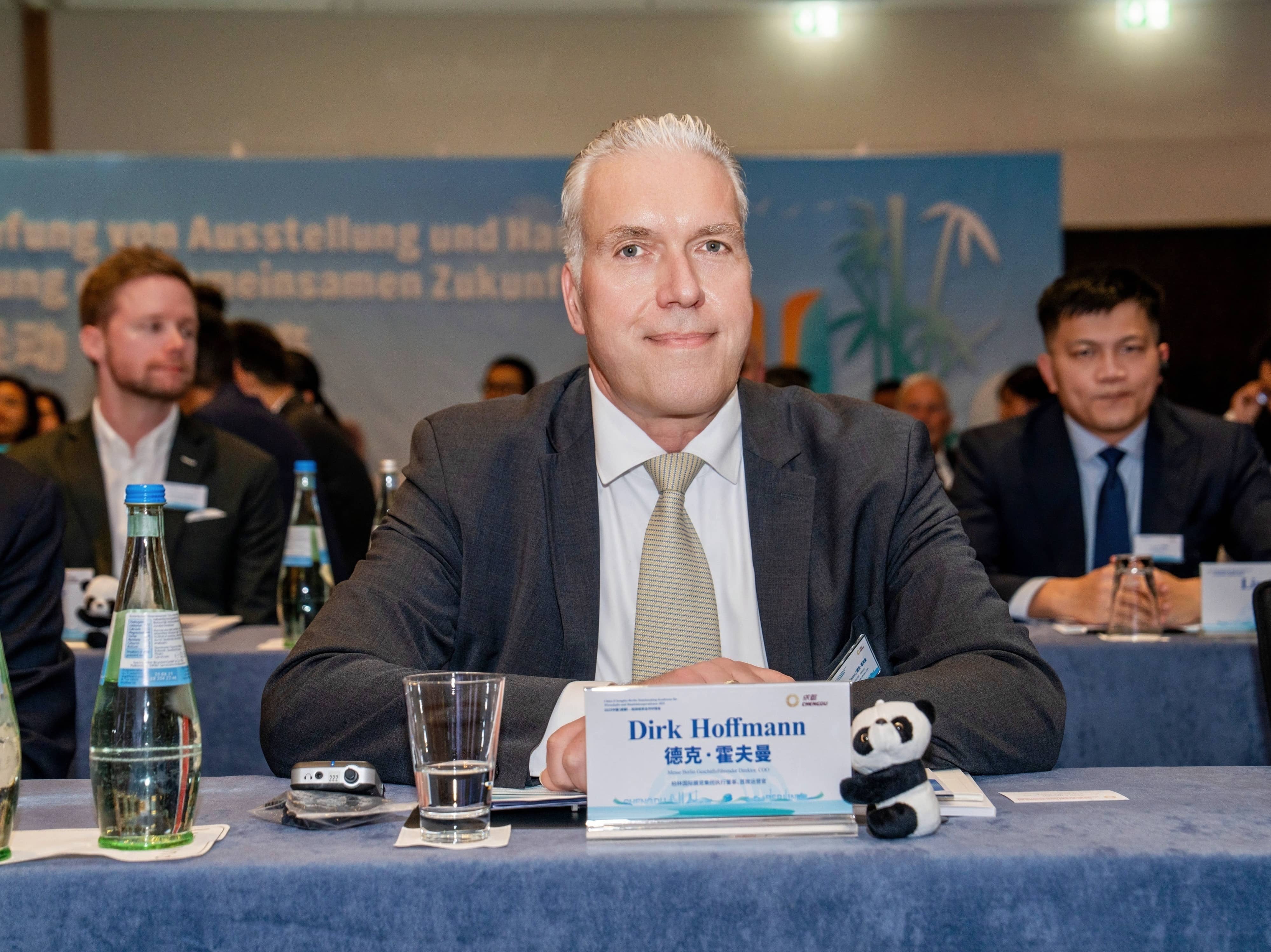 10月15日,柏林展览集团首席运营官 Dirk Hoffmann 受邀出席由成都市政府在德国柏林举办的 2025中国(成都)—柏林经贸合作对接会。本次会议以“展贸联动・共拓未来”为主题,现场发布成都经贸合作机会清单,并官宣 Messe Berlin 柏林展览集团成为成都市“开放成都”海外合作伙伴,双方将携手在经贸、会展与产业联动等领域开展更深层次合作。